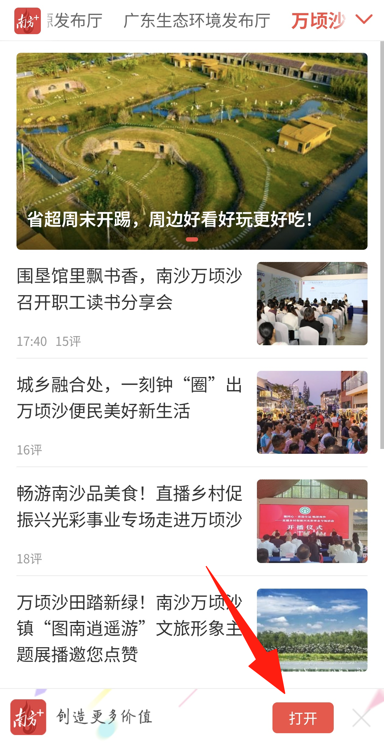 第一步:长按或扫描下方二维码,点击“打开万顷沙频道”,按指引下载或打开南方+客户端。