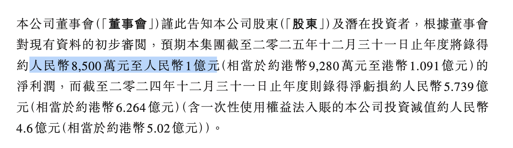 2025年全年,公司预计实现净利润8500万元至1亿元,较2024年的5.74亿元巨额亏损大幅提升。
