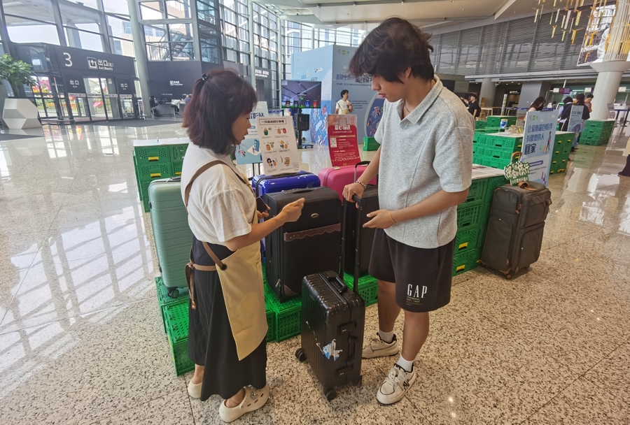 最近,联合国教科文组织气候变化教育办公室执行主任大卫·威尔根布斯就在虹桥火车站遭遇行李箱“罢工”难题,拉杆坏了的他立刻更换了一只行李箱,并感叹:“这是我在全球出差第一次遇到,这种环保可持续的尝试值得推广。”