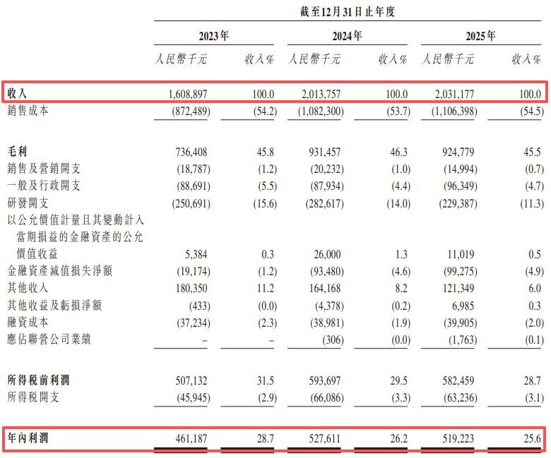 2023年、2024年和2025年(以下简称“报告期内”),帝尔激光营收增速未显现出明显放缓迹象。2023年公司营收约16.09亿元,2024年增长25.2%至约20.14亿元。但进入2025年,公司营收约20.31亿元,同比增幅不足1%。