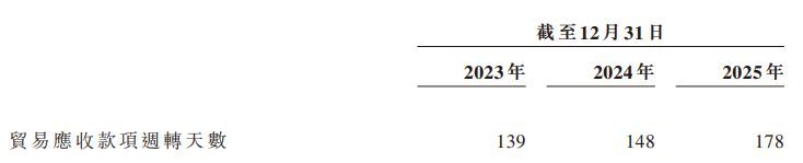 招股书还披露,帝尔激光的贸易应收款项周转天数呈现出逐年增加的趋势,从2023年的139天,增加至2024年的148天,并在2025年大幅跳升至178天。这也表明,公司从设备确认收入到实际收回现金的时间周期正在显著拉长,客户的付款节奏出现了实质性放缓。