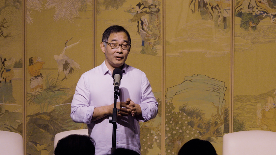 展览策划汤哲明发言。