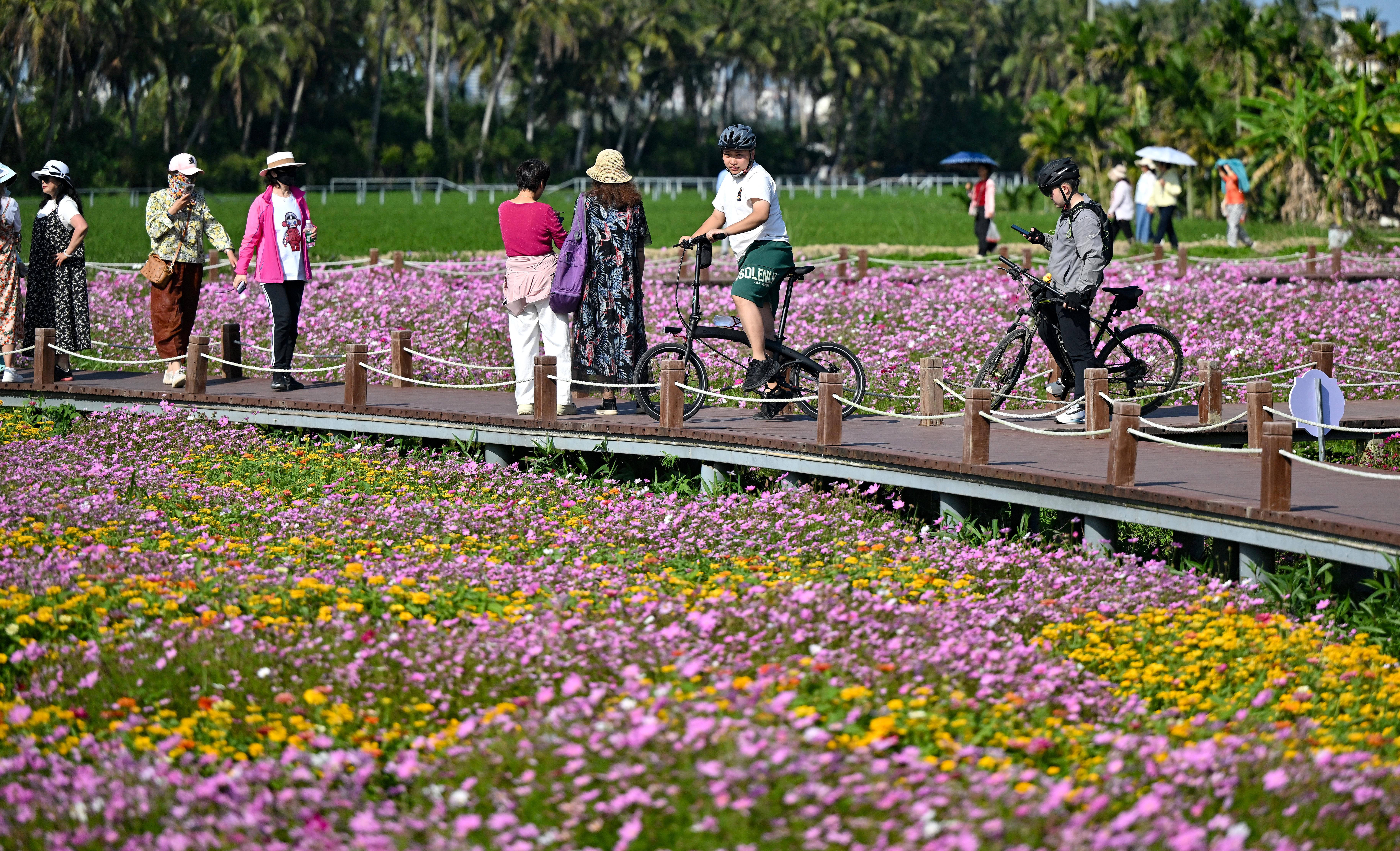 博鳌亚洲论坛2026年年会临近,琼海市博鳌镇南强村数十亩主题花海迎来盛放期,吸引游客前来踏青赏花。